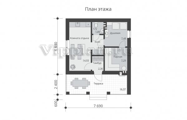 | Размеры дома: | 9.64м×7.69м |